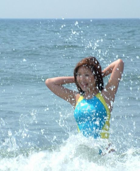 All Gravure: Ageha Yagyu Asian in spandex bath suit shows curves on bike