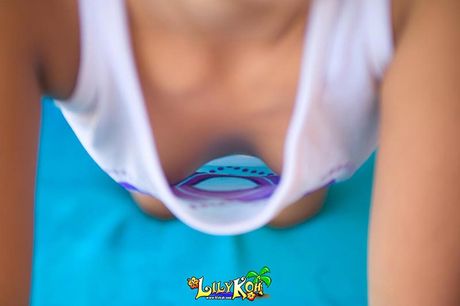 Lily Koh: Asian panties are pulled between soft hairless pussy lips