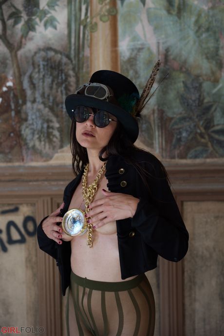 Girl Folio: Asian teen Sophia Jade strips to her pantyhose and shows her big juggs