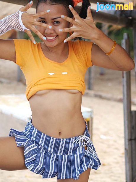Joon Mali: Foxy Asian teen give an upskirt peek to show petite buns