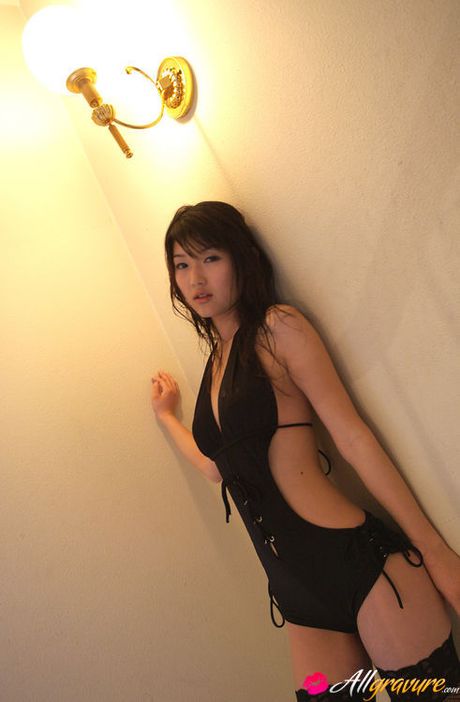 All Gravure: Noriko Kijima Asian with sexy back in black lingerie is very hot
