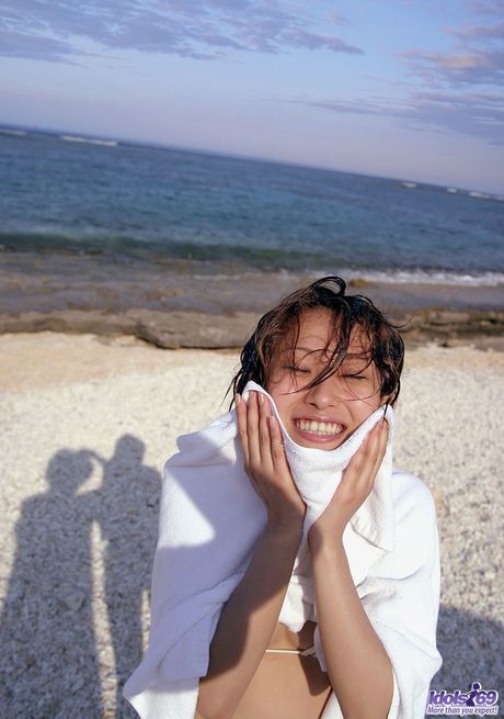 Idols 69: Platinum Japanese babe Nao Yoshizaki reveals her tiny tits and hot ass on the beach