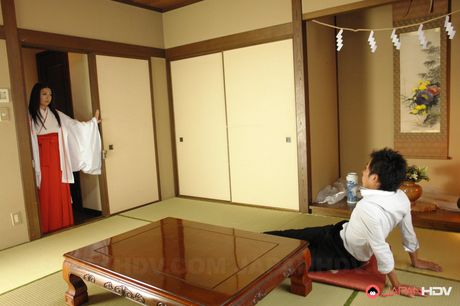Japan HDV: Stunning japanese brunette Nao Sakurai in hot lingerie uncovering small tits and spreading her legs in the kitchen