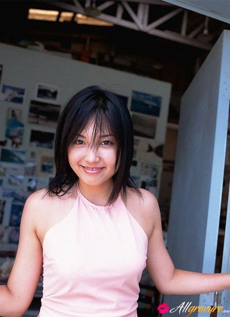 All Gravure: Yoko Mitsuya busty Asian posing outside in her black bikini